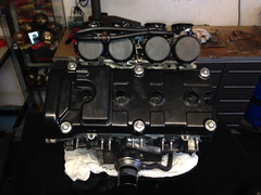 Cam cover removed to check cam lobes for any top end oil starvation, all lobes in very good condition with no wear shown, visibly all the same as the