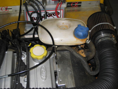 off which comes the expansion pipe hose fsacing down. Another T piece with the thermostat bottom hose connection (from the housing exhaust side)