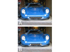 Option A means cutting new holes in the bodywork and option B means modding the grille. Please excuse the crudely photoshopped grille