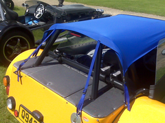 There is a yellow Velocity that has a blue top that is at every show I have been to but whose owner I haven't met yet. Or if I have met them I haven't realised the connection between owner and car. Anyway, I would like to do a similar top but do not know where to get the roof material and the trim that attaches to the windscreen frame from. Could the owner of that car point me in the right direction please?