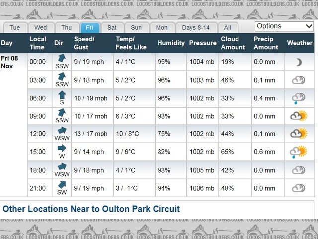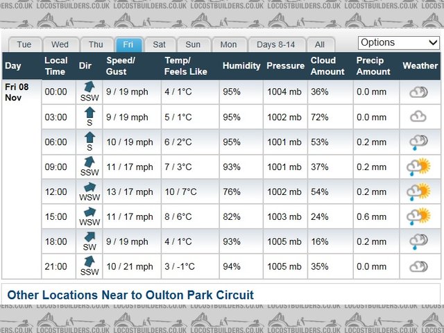 Current forecast is ok considering it's November, will be traveling over Friday am as swimbo's in hospital Thursday for a examination