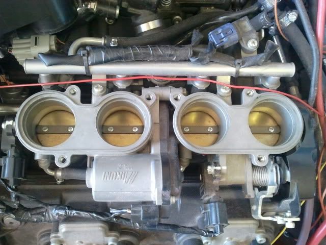 on my 2006 R1 i mounted my filter base plate on top of the trumpets which you currently have missing. this raised it above the fuel rail. The 2006