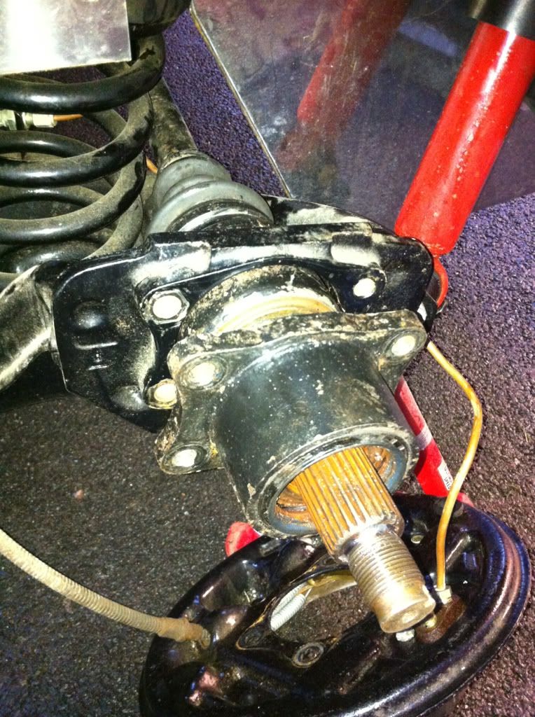 I've got the drum and back plate off (hub/bearing carrier was incorrectly fitted behind back plate) and now the hub won't come off the
