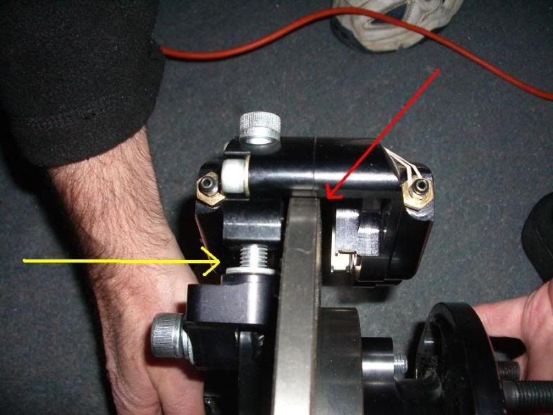 caliper. The caliper wont fit unless extended from the bracket see pic below - red line shows its resting on the disc and the yellow shows the caliper
