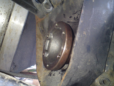 Then I bolted the bearing carrier back on and tried inserting the outer end of the drive shaft (lobro) into place and the damned thing fouls the