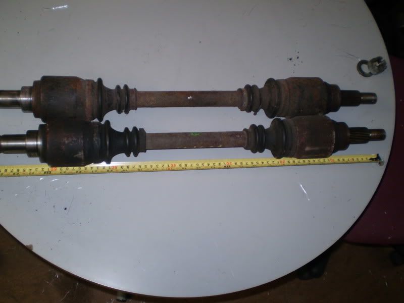 I measured the drive shaft including cv joints 61cm for the long shaft (i've lost 5mm in the measurement somewhere). For the short shaft its