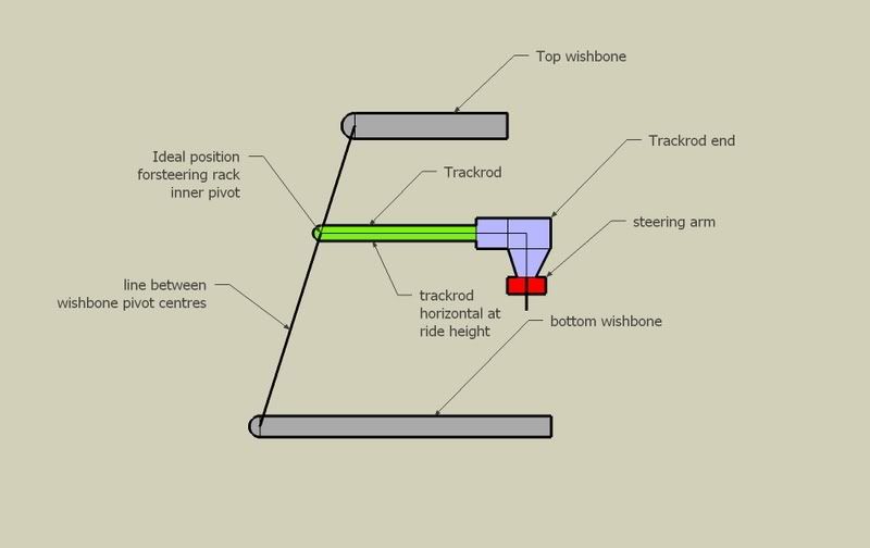 It's all to do with the optimum position for the inner pivots of the steering rack, the pivot should lie on a line between the top and bottom