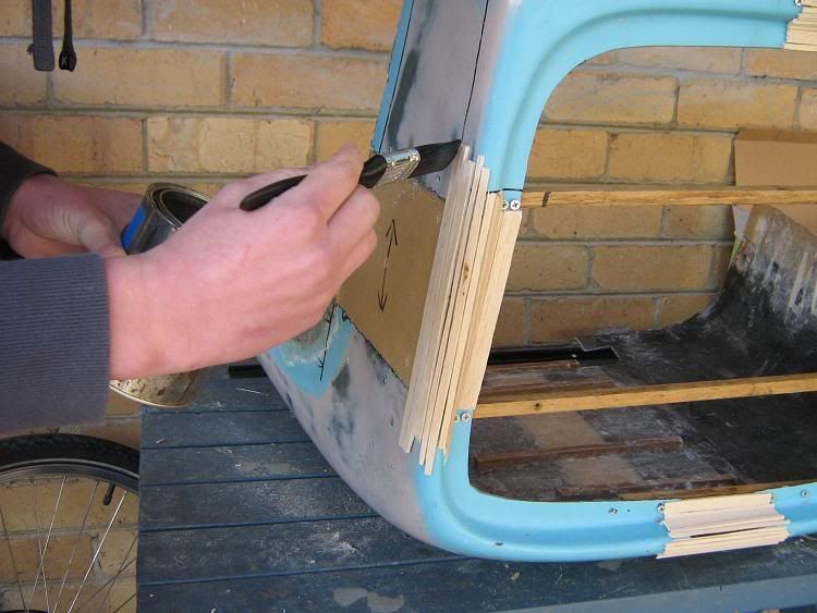 In the bottom photo you can see where I had to cut the new section from top to bottom to push it back into the correct shape as the balsa former