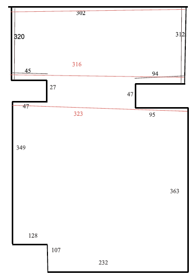two on the lower edge dont add up to the lower red one which it should 'if' all the lines are horizontal and vertical.