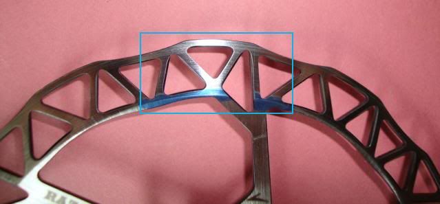 by the pads. The lower part of the disc is not touched at all (actually the pads I have are slightly worn at the top and bottom so the situation