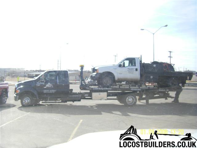 It a flat bed F650 hauling off an F350, both flat beds but still big trucks.