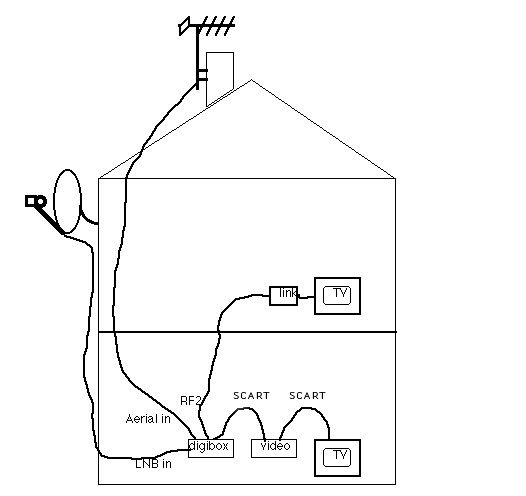RF out (From Sky Box) to Wall mounted aerial plug (Downstairs)
