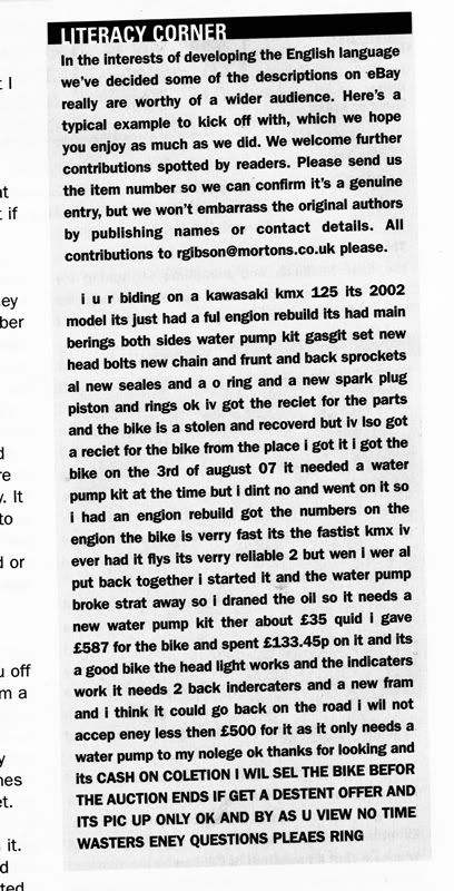 Jeez! I'd forgive the slightly bad spelling but the lack of punctuation actually makes reading that description almost impossible!!!