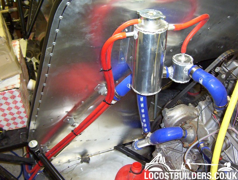 and here are the header tank and swirl pot i made. i had my doubts whether the system would work but it turned out perfect. all the air bled out
