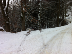 +80mph only to be confronted with 100metres of snow across the road. The road before that was dry but a snow bank had collapsed in the sun; Very scary
