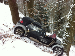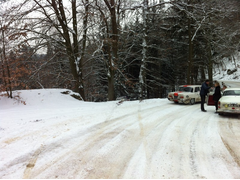 snow!!, using the little plastic car (LSIS). Wife will be on navigation duty for the 2000km trip trough ice and snow in 6 days.