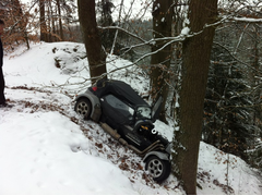 that the road we were on was a mountain road and there was a 20ft drop. Luckily, a tree made quite a good emergency brake and we came to a fairly