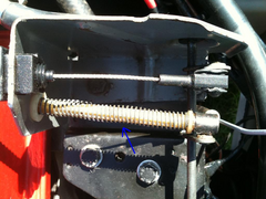 on the cable, its not in the correct place the spring is on the cable its self and is not strong enough to return the cable. I was at Stoneleigh