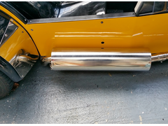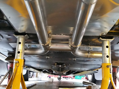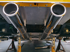 The rear section of exhaust is rigidly mounted, with 15mm clearance from the bottom of the car, self adhesive bike fairing heat shield for protection,