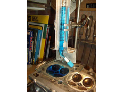 This last weekend I got around to checking the combustion chamber volumes - mostly to ensure they are all the same size. Within a tolerance of course.