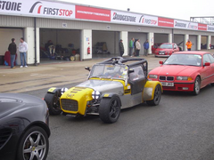 Its a very cheap day at £159 for the full GP circuit,the pit garages are quite large at Silverstone,you could get 4 s7vens in one at a