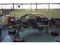 of the chassis. Note the remnants of the transmission tunnel, modified due to the absence of the prop, how it aims force straight through one node and