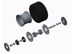 Had a stab at a bespoke 13x10.5 rear wheel using COTS parts where possible. Fairly confident the shaft/bearing arrangement works OK, although the cush