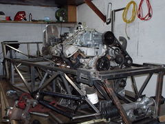 Here is a picture of the lumps in place and a nearly completed (tacked) chassis. It's now welded.