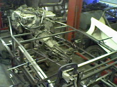 The chassis itself is an AGM uprated 500bhp chassis but has been widened by a further 100mm to allow the engine to be shoe horned in and has the added