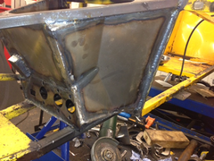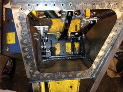 Here's the full frontal. There's been a little warping when welding, but the pedal-box goes in straight and bolts up true.