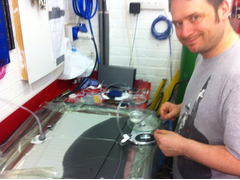 One fully infused, vacuum bagged part, sitting in the sun curing. I was lucky in having to work away from home for three days when the UK weather was