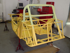 The main tube is 2 1/4" x1/8" round seamless and bent with a clarke type bender, the stays are 2" x 3mm seamed and the belt