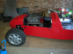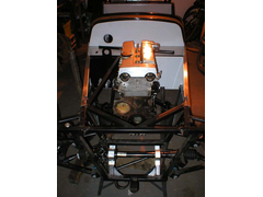 Engine bay of Mike Laws Locost showing modified 'R' tube