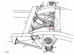 I think the part from RangeRover is highlighted below. Two bolts either side of the ball joint.