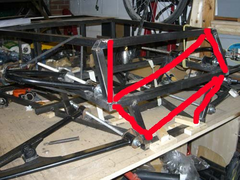 I can't see why it would need more tubes in the front. Are the wishbone brackets parallel to each other and the centreline of the chassis, they