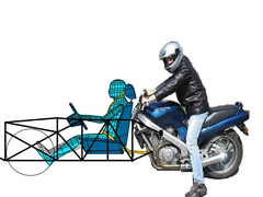 Bikes lean in corners and therefore centrifugal force has a part to play in riders/passengers staying on board. Your car will corner flat and that