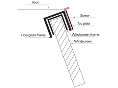 Cool car, thanks for the pictures! Presumably, the soft top fabric is sanwidched in between the channel that goes on top of the screen and the ali