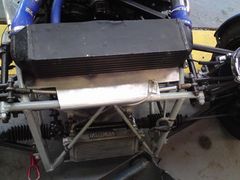 Here's my MR2 turbo intercooler mounted in front of a Polo rad. I currently have 270BHP but that's probably about the limit on this one. The