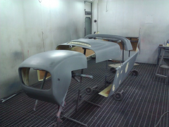 After what seemed like hours of masking the panels where set out in the paint bay for painting.