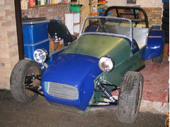 Flintstones style hood, with the back open. I plan to make a proper hood at some point, but the flintstone one is quite good cheap and simple.