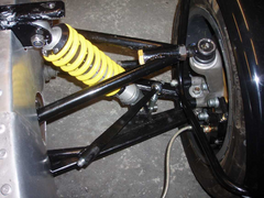 Front end is almost complete. New upper wishbones made by myself and repositioning of the upper shock mount more outboard ( thanks Matt!) anti-roll