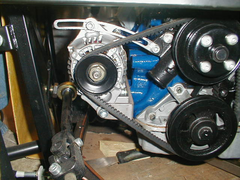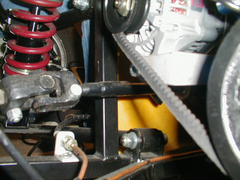 That brake pipe that run's down the chassis rail near the offside front wishbone will foul on the altenator if you are using a pinto.