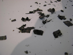 Big ends have just gone on my XE and the slivers stuck in the sump and pump strainer look quite similar to that. Razor sharp and super thin.