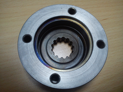 Grabbed a scrap diff and removed the pinion prop flange, cut the end off and machined a taper so it dropped on the splined lump nicely, female end.