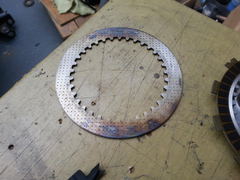 and blue in colour from over heating. The friction plates are mostly ok in appearance except the one next to the burnt steel which is slightly