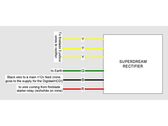 I've just found this on here which shows which wires are which on the superdream rectifier...