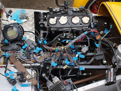 With no fuel pump yet or exhaust manifold I thought I would connect a spare car battery I've got to see how the electrics behave.