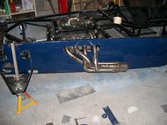 I then built up each header by working from the manifold, carefully tacking up the sections of pipe, using the brake pipe sections as templates.
