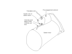 Hi rorty, here's a diabolical picture of a starter motor showing where I'm saying break the circuit to put the reverse PWM controller. It