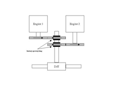 Thats basically how the transfer boxes work, but without the freewheeling capability. Syncronising the power isnt the issue because if one engine